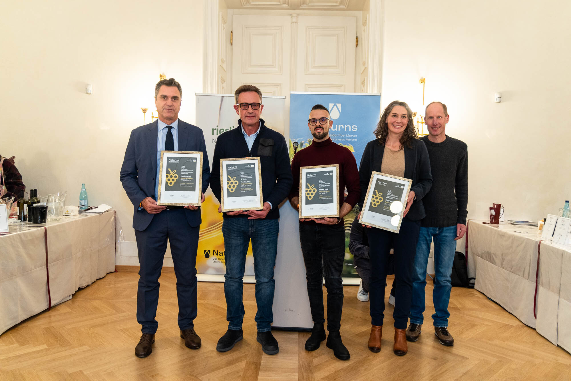 Alle Wettbewerbsweine konnten am vergangenen Freitag beim 34. Merano Winefestival im Kurhaus von Meran verkostet werden, wo auch die Prämierung stattfand. Ausgezeichnet wurden dabei nicht nur die fünf Top-Platzierten, sondern auch die Regionensieger, also die besten Weine jener Weinbauregionen, aus denen mehrere Weine zum Wettbewerb eingereicht worden waren. Neben den Rieslingen der Weingüter Unterortl - Castel Juval (Südtirol) und Ettore Germano (Piemont) waren dies der Riesling Trentino DOC der Cembra Cantina di Montagna (Trentino) und der Riesling Oltrepò Pavese DOC Filare 52 des Weinguts Manuelina (Lombardei).